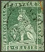 Marzocco en la edición filatélica del Granducato di Toscana (1851)