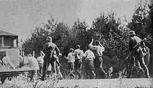 Alrededor del 8 de septiembre, durante la invasión de Polonia que comenzó el 1 de septiembre, el 15.° Regimiento de Infantería Motorizada alemán de la 29.ª División de Infantería Motorizada, 10.° Ejército Alemán, se enfrentó a los remanentes del 74.° Regimiento de Infantería Polaco de Alta Silesia de la 7.° División de Infantería polaca, Ejército de Cracovia, y tomó varios prisioneros de guerra.[1] En ese momento, las fuerzas polacas en la región ya estaban en retirada, con la 7.ª División siendo efectivamente destruida el 3 y 4 de septiembre alrededor de Częstochowa, con su comandante, el general Janusz Gąsiorowski, hecho prisionero.[4] El 74.º Regimiento de Infantería estaba al mando del coronel Wacław Wilniewczyc.[5] También se considera que el regimiento sufrió grandes pérdidas durante la batalla de Częstochowa, y algunas fuentes lo reportan como totalmente destruido.[6]