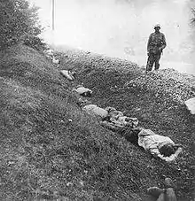 La masacre fue documentada en fotos y memorias de un soldado alemán anónimo, que presenció un enfrentamiento en el que soldados polacos tendieron una emboscada y mataron a más de una docena de soldados alemanes de la 11.ª Compañía del 15.º Regimiento, incluido el comandante de la compañía, el capitán Lewinsky. Luego se capturó a varios soldados polacos, y el Oberst (Coronel) Walter Wessel, comandante del 15 ° Regimiento de Infantería Motorizada alemán, 29 ° División de Infantería Motorizada, ordenó que les quitaran los uniformes y los declararan partisanos y los llevó a un lugar apartado cerca de la pueblo de Dąbrowa, cerca del pueblo más grande de Ciepielów, donde les dispararon. El autor anónimo de las memorias llegó a ese lugar después de escuchar disparos y contó aproximadamente 300 cuerpos en una zanja al borde de la carretera. Estos documentos fueron recibidos por la Misión Militar Polaca en Berlín Occidental en 1950.[1][11]