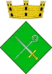 - «Escudo losanjado: de sinople, una espada de argén adornada de oro y un báculo de abad de argén pasados en sautor. Por timbre, una corona mural de pueblo.»[2]