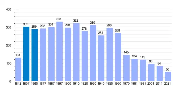 Gráfica de evolución demográfica de Masegoso de Tajuña[3] entre 1842 y 2021