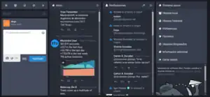 ![]() Cliente web de Mastodon. Destacando el menú Inicio, las notificaciones y la barra de navegación. | ||