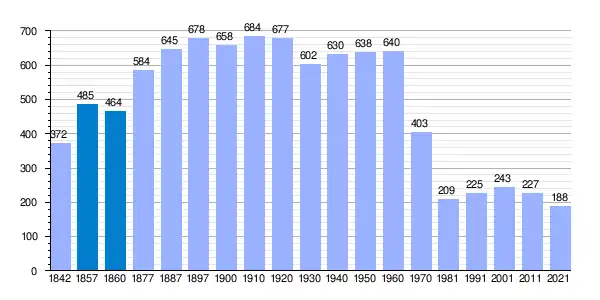 | Gráfica de evolución demográfica de Matabuena[3] entre 1842 y 2021 |