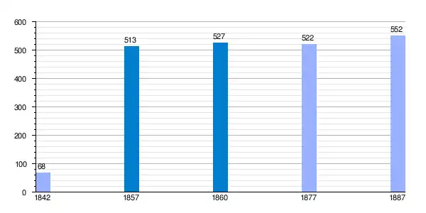 | Gráfica de evolución demográfica de Matamorisca[7] entre 1842 y 1887 |