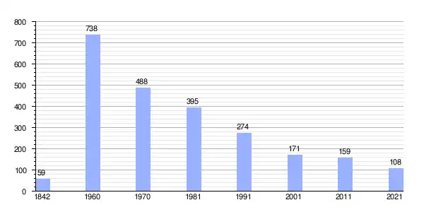 | Gráfica de evolución demográfica de Matillas[3] entre 1842 y 2021 |