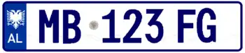 Policía de Albania Las placas de matrícula de los vehículos en Albania tienen bordes azules y textos azules sobre un fondo blanco. Siguen el formato [MB 000 AA], donde MB significa Ministria e Brendshme, que significa Ministerio del Interior.