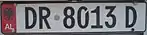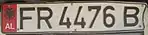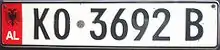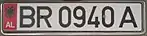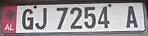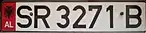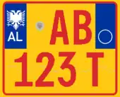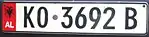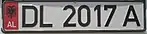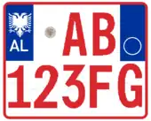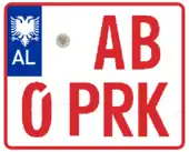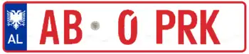 En Albania, las placas de matrícula "repetitivas" tienen bordes rojos y textos sobre un fondo blanco. Estas son placas de matrícula adicionales para instalar, si hay un objeto como un portabicicletas bloqueando la placa de matrícula original de un vehículo privado.