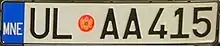 Las placas vehiculares montenegrinas, implementadas en 2008, son rectangulares, tienen caracteres negros con fondo blanco y una banda azul con las letras MNE en el lado izquierdo.[1] Estas reemplazaron al sistema antiguo yugoslavo (ahora serbio antes de la independencia de 2006).