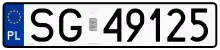 Las matrículas polacas desde el 1 de mayo de 2000 tienen caracteres de color negro con fondo blanco. Cada ciudad/powiat tiene dos o tres letras correspondientes. Existen varias formas de formar estas matrículas: