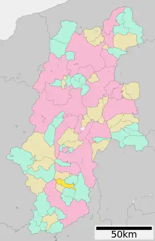 - «長野県» [Prefectura de Nagano] (PDF). Autoridad de Información Geoespacial de Japón (en japonés). Archivado desde el original el 26 de diciembre de 2019. Consultado el 29 de noviembre de 2019.