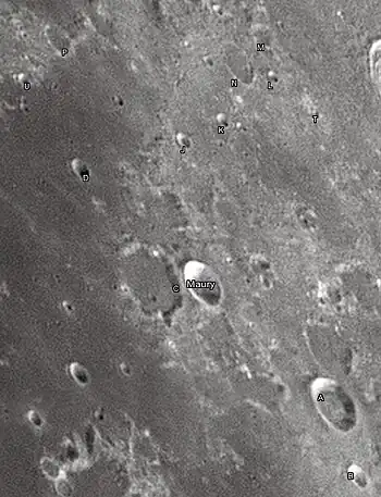 Por convención estos elementos son identificados en los mapas lunares poniendo la letra en el lado del punto medio del cráter que está más cercano a Maury.