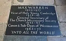 Max Warren (1904-1977) fue Secretario General de la Sociedad Misionera de Church Mission Society y canónigo de la Abadía de Westminster.