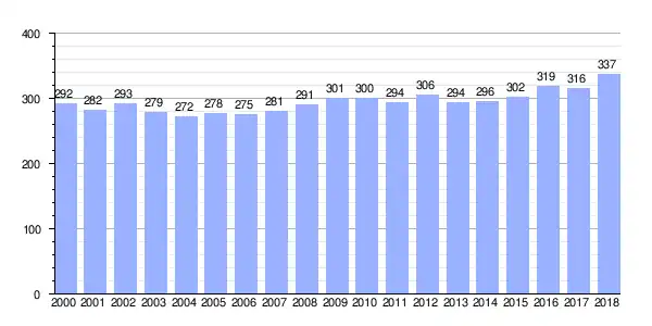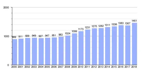 Gráfica de evolución demográfica de Maianca (lugar) entre 2000 y 2018
