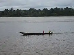![]() Bote sobre el río Napo en el distrito de Mazán.