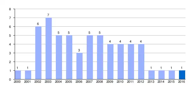 | Gráfica de evolución demográfica de Maza de San Pedro[2] entre 2000 y 2016 |