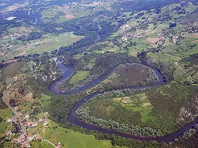 Los meandros del Nora se encuentran en el tramo anterior de la confluencia de dicho río con el Nalón desde el pueblo de San Pedro de Nora hasta el embalse de Priañes, formando meandros encajados que separan los concejos asturianos de Oviedo y Las Regueras. Se cataloga geológicamente en la región de pliegues y mantos de la zona asturiana del macizo cantábrico.