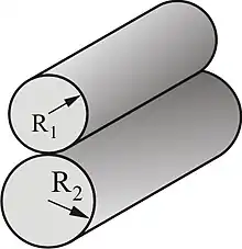En el contacto entre dos cilindros de ejes paralelos, la fuerza es linealmente proporcional a la profundidad de la hendidura: