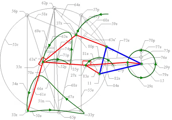 Las proporciones de cada uno de los enlaces del mecanismo están definidas para optimizar la linealidad del movimiento del pie en cada medio ciclo de rotación de la manivela. Durante el otro semiciclo, el pie pasa a ser levantado a una altura predeterminada, antes de regresar a la posición de inicio, repitiéndose el ciclo. Dos de estas conexiones funcionan en la misma fase de la manivela, y las otras dos con medio ciclo de desfase, permitiendo que el marco del vehículo se desplace completamente en paralelo.