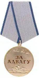 La Medalla al Valor se otorga al personal militar, superior y alistado de los órganos del interior, la Comisión de Investigación, la Comisión Estatal de Instrucción Forense, los órganos de investigación financiera de la Comisión Estatal de Control, los órganos y divisiones para situaciones de emergencia y otros ciudadanos para asuntos personales. Por el coraje y el valor desplegados en:[3]