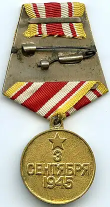 | Otorgada por | Participar directamente en las operaciones militares contra Japón durante la Guerra soviético-japonesa | |