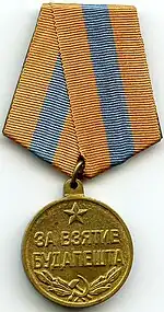 | Otorgada por | Su participación en la conquista de Budapest entre el 20 de diciembre y el 15 de febrero de 1945. | |