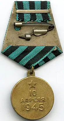 | Otorgada por | Su participación en la conquista de Königsberg entre el 23 de enero y el 10 de abril de 1945. | |