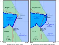 A raíz de lo candente de la situación, las divergencias en cuanto a la precisa delimitación en el Estrecho de Magallanes se acentuaron. Chile consideraba que el estrecho terminaba en la línea Punta Dungeness-Cabo Espíritu Santo. Por el contrario la Argentina planteaba que el estrecho continuaba hasta el Cabo Vírgenes. Si se aceptaba la visión chilena, la Argentina no era corribereña ni cogarante del estrecho y por eso no tenía derecho a participar en la regulación del tráfico marítimo. Además, si el estrecho terminaba allí y luego continuaba el océano Atlántico, Chile podría exigir derechos propios en ese océano según el derecho internacional del mar. La visión argentina implicaba lo contrario: derecho de la Argentina a participar en la regulación del tráfico marítimo en el estrecho y la negación de derechos chilenos en el Atlántico.