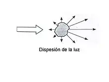 La extinción de la luz se debe en su mayor parte a la dispersión de la luz que se produce al impactar la luz en las partículas de polvo. En la figura se observa la dispersión de la luz al impactar sobre un obstáculo. La mayor parte de la luz se desvía hacia adelante con máximos entre 10º y 35º (dispersión progresiva). La dispersión tiene una relación conocida con respecto a la extinción lo que permite calibrar ambos sistemas en extinción. Los equipos por dispersión suelen trabajar por muestreo. Aspiran aire ambiente que envuelto exteriormente en una capa de aire “limpio total” pasa por la célula de medida en la cual se mide la dispersión de la luz. Los equipos basados en la medición de la dispersión si bien son medidores puntuales, tienen la ventaja frente a los de extinción que suministra directamente el valor correspondiente a la opacidad del aire muestreado y no un valor medio integrado a lo largo de algún centenar de metros.