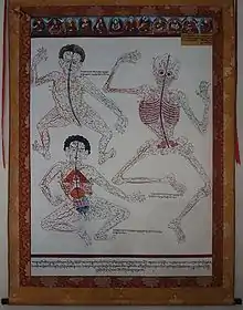 - Gyamtso, Sangye. «Intro card». Tibetan Medicine Cards: Illustrations and Text from the Blue Beryl Treatise of Sangye Gyamtso (1653-1705). Pomegranate Communications. p. 32. ISBN 978-0764917615.