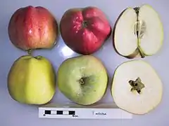 ![]() La variedad de manzana 'Medina' con secciones cruzadas. | ||