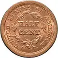 El medio centavo, o half cent, fue la denominación más pequeña de la moneda estadounidense. Se acuñó por primera vez en 1793 y cesó su emisión en 1857. Fue acuñado con cinco diseños diferentes.