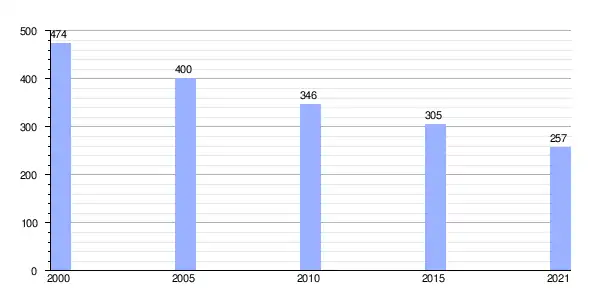 | Gráfica de evolución demográfica de Meilán entre 2000 y 2021 |