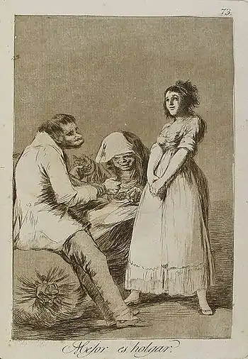 Existen varios manuscritos contemporáneos que explican las láminas de los Caprichos. El que se encuentra en el Museo del Prado se tiene como autógrafo de Goya, pero parece más bien despistar y buscar un significado moralizante que encubra significados más arriesgados para el autor. Otros dos, el que perteneció a Ayala y el que se encuentra en la Biblioteca Nacional, realzan la parte más escabrosa de las láminas.[1]