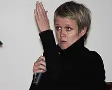 ![]() Melanie Smith en una proyección de sus videos en 2012. | ||