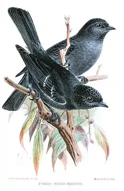 El carbonero cenizo (Melaniparus funereus)[2] es una especie de ave paseriforme de la familia Paridae propia de África Central y Occidental. Anteriormente se clasificaba en el género Parus, pero fue trasladado al género Melaniparus, como otras especies, cuando un análisis genético publicado en 2013 demostró que todas ellas formaban un nuevo clado.[3][4]