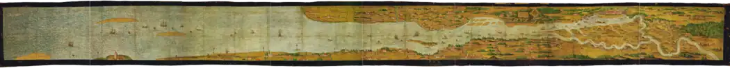 En 1567, Melchior Lorck aparece en documentos del ayuntamiento de Hamburgo, donde parece que permaneció hasta 1572; allí escribió su testamento.[10] Inicialmente, Lorck fue empleado como cartógrafo para cartografiar los pequeños afluentes que fluyen hacia el río Elba, desde Geesthacht hacia el mar, a fin de apoyar las reclamaciones legales del territorio del vecino ducado de Brunswick-Luneburgo. El impresionante mapa resultante todavía se conserva en los Archivos del Estado de Hamburgo.[11][12]