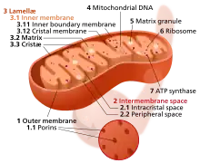 La membrana mitocondrial interna contiene aproximadamente 75 % de proteínas y 20% de cardiolipinas en peso seco. Es mucho más rica en proteínas que la membrana externa. La membrana externa de la mitocondria contiene porinas, que son proteínas que forman poros no específicos que permiten la entrada por libre difusión de moléculas mayores a 5 kD. A través de la membrana interna únicamente son permeables CO2, O2 y H2O, para permitir el paso de metabolitos como el ATP, ADP, piruvato, Ca2+ y fosfato; hay proteínas que controlan este transporte. Esta impermeabilidad controlada permite la generación de gradientes iónicos y da como resultado la compartamentalización de funciones metabólicas entre el citoplasma y la mitocondria.