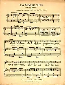 «Memphis Blues» es también el título de una canción publicada por W. C. Handy en 1912. Esta composición no es el primer tema de blues publicado, pero fue uno de los primeros éxitos de la música blues. Handy compúso este tema basándose en su canción de campaña política «Mr. Crump Don't Like It».