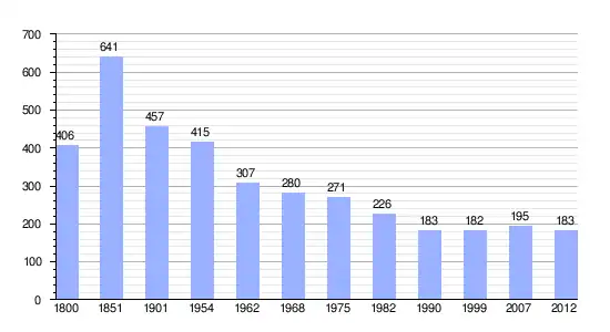 | Gráfica de evolución demográfica de Mendive entre 1800 y 2012 |
