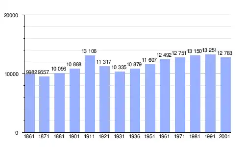 | Gráfica de evolución demográfica de Menfi entre 1861 y 2001 |