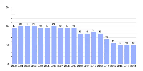 Gráfica de evolución demográfica de Menlle de Abaixo entre 2000 y 2018
