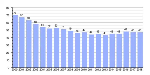 | Gráfica de evolución demográfica de Menlle de Arriba entre 2000 y 2018 |