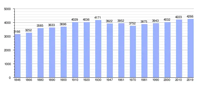 Todos los datos históricos relativos al actual municipio, el siguiente gráfico refleja su evolución demográfica, incluyendo municipios después de efectuada la fusión el 1 de enero de 1977.