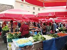 Consta de dos plantas y un entrepiso, y los puestos del nivel superior al aire libre (una plaza seca elevada) se dedican especialmente a la venta de frutas y vegetales ofrecidos principalmente por productores de la zona y también llegados de otras partes de Croacia. En otros sectores del mercado se ofrecen a la venta carnes, quesos, miel, embutidos, panes, pasteles, productos lácteos y comidas preparadas, así como flores, souvenirs, productos textiles y artesanías.[1][2][5][4]