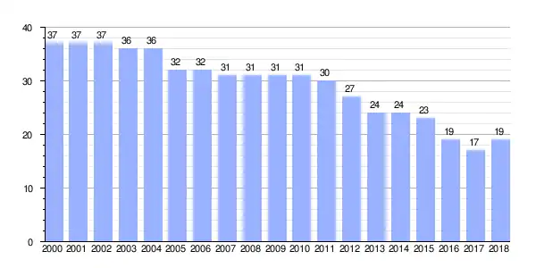 | Gráfica de evolución demográfica de Mercurín (lugar) entre 2000 y 2018 |