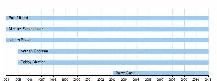 Bart Millart Nathan Cochran Michael "Mike" Scheuchzer Robby Shaffer James "Jim" Bryson Barry Graul | ||