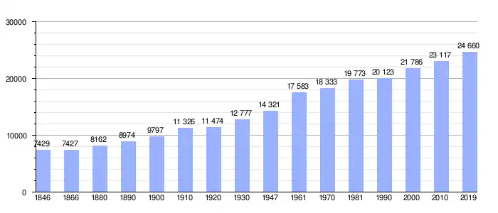 Todos los datos históricos relativos al actual municipio, el siguiente gráfico refleja su evolución demográfica, incluyendo municipios después de efectuada la fusión el 1 de enero de 1977.