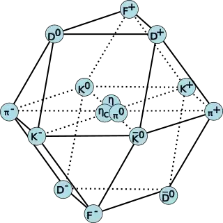 ![]() El mesón ηc dentro del multiplete (15-plete) de los mesones pseudoescalares | ||