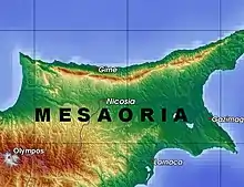 Mesaoria es una ancha llanura que se ubica en el centro de la isla de Chipre. Por ser el principal área de producción agrícola de la isla, se le considera como «el granero de Chipre».