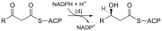 | (d) | 3-cetoacil-ACP reductasa | Reduce la cetona del carbono 3 a un grupo hidroxilo | |
